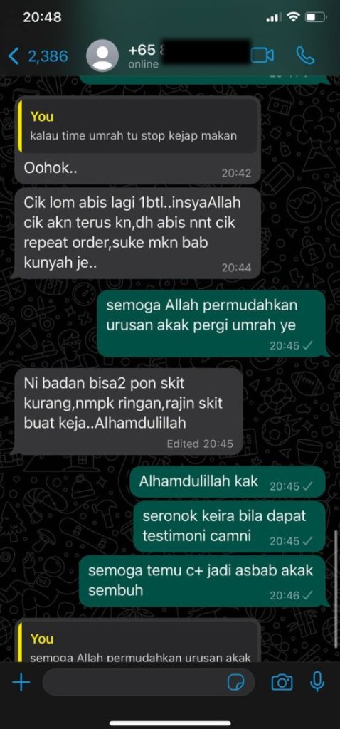 Ikut keserasian tubuh badan. Jika anda dah cuba macam-macam produk yang ada di pasaran. Tak salah untuk anda cuba pula Temu C+. Kita berusaha. Selebihnya, serah pada sistem tubuh badan untuk tindak balas. Secara kajian klinikal, formulasi produk ini sangat serasi dengan ramai orang. Anda boleh baca testimoni yang dikongsi oleh pengguna lain.